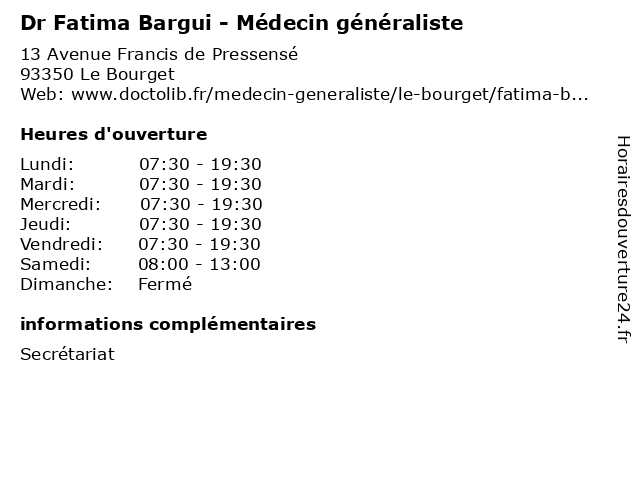 | Vendredi | 07:30-19:30 |