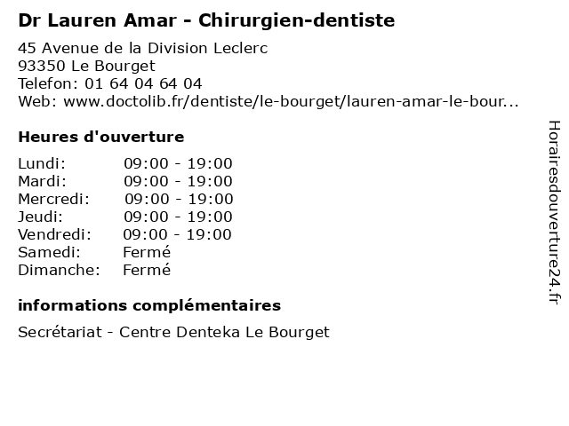 | 1 Dr Lauren Amar - Chirurgien-dentiste (Distance: 5,60 km) 3 Rue Etienne Dolet, 93230 Romainville amar, chirurgien, dentaire, dentiste, dr, implantologie, lauren, parodontologie 2 Dr Lauren Amar - Chirurgien-dentiste (Distance: 17,59 km) 52 Boulevard Clemenceau, 95240 Cormeilles-en-Parisis amar, centre, chirurgien, cormeilles, dentaire, dentiste, dr, en, implantologie, lauren, ortodontix, parisis, parodontologie 3 Hind Amar - Psychologue (Distance: 2,78 km) 112 Avenue Édouard Castelnau, 93700 Drancy amar, hind, psychanalyste, psychologue, psychothérapeute, thérapie 4 Amar Saheb - Masseur-kinésithérapeute (Distance: 3,71 km) 2 Rue Du Dr Delafontaine, 93205 Saint Denis amar, consultation, docteur, kinésithérapeute, masseur, med, médecin, saheb, traitement 5 Dr Amar Amrane - Médecin morphologique et anti-âge - secrétariat (Distance: 5,39 km) 21B Avenue Paul Langevin, 93600 Aulnay-sous-Bois amar, amrane, anti, consultation, docteur, dr, et, med, morphologique, médecin, médecine, secrétariat, traitement, âge 6 Dr Laurent Amar - Anesthésiste réanimateur (Distance: 6,06 km) 45 boulevard du maréchal Juin, 93260 Les Lilas amar, anesthésie, anesthésiste, consultation, docteur, dr, dr., laurent, medecins, réanimateur, réanimation, santé |
