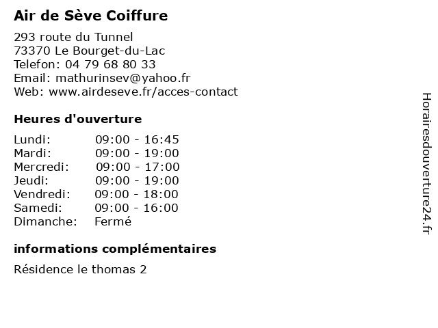 | 1 Christyle Coiffure (Distance: 0,10 km) 10 Place du Général Sevez, 73370 Le Bourget-du-Lac christyle, coiffure 2 Cybele Coiffure (Distance: 0,15 km) 142 route de Chambéry, 73370 Le Bourget-du-Lac beauté, coiffeur, coiffure, coloration, coupe, cybele, shampooing 3 Rectimo Air Transports (Distance: 3,84 km) Route d'Aix, 73420 Viviers-du-Lac air, rectimo, transports 4 Shop Coiffure (Distance: 4,09 km) 84 Avenue du Golf, 73420 Drummettaz-Clarafond beauté, coiffeur, coiffure, services, shop 5 Look@m - Salon de coiffure mixte (Distance: 4,21 km) . Allée des Erables, 73420 Drumettaz-Clarafond coiffeur, coiffure, de, look@m, lookam, mixte, salon 6 Aprecial Coiffure (Distance: 5,38 km) 75 rue Lavoisier, 73290 La Motte-Servolex aprecial, cheveux, coiffeur, coiffure, coloration, coupe, lissage, mèche |