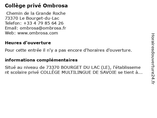 2 Lycée professionnel privé Lasalle Sainte-Anne - Savoisienne (Distance: 4,88 km) 260 Rue de Leya, 73290 La Motte-Servolex anne, lasalle, lycée, privé, professionnel, sainte, savoisienne 3 VTC Chambery Chauffeur Privé (Distance: 8,86 km) 334 Rue Nicolas Parent, 73000 Chambéry chambery, chambéry, chauffeur, privé, service, transfert, transport, vtc 4 ALLARYS - Détective Privé Chambéry (Distance: 9,40 km) 6 Avenue Jean-Jaurès, 73000 Chambéry allarys, avocat, chambéry, droit, détective, détective privé, enquête, grenoble, investigation, justice, privé, savoie 5 Lycée général et technologique privé Saint-Ambroise - Assomption Chambéry (Distance: 9,57 km) 2 Rue Burdin, 73000 Chambéry ambroise, assomption, chambéry, et, général, lycée, privé, saint, technologique 6 Collège Privé Saint François de Sales (Distance: 9,89 km) 9 Avenue Docteur Desfrançois, 73000 Chambéry collège, de, françois, privé, saint, sales |