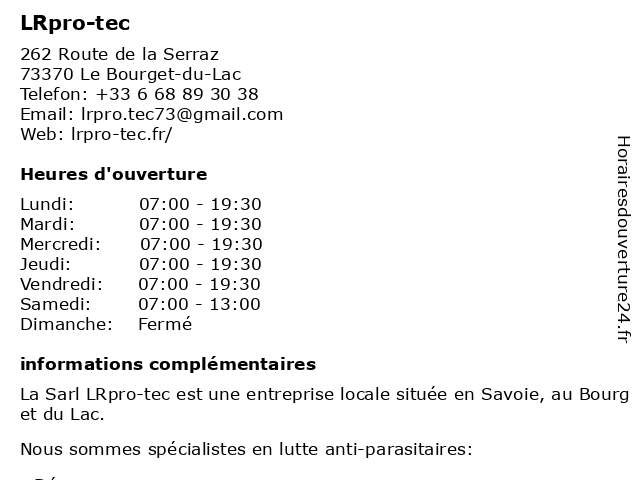 | Lundi | 07:00-19:30 |