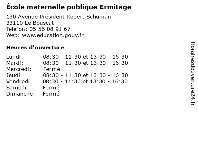 | Mardi | 08:30-11:30 et 13:30-16:30 |