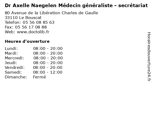 | Lundi | 08:00-20:00 |