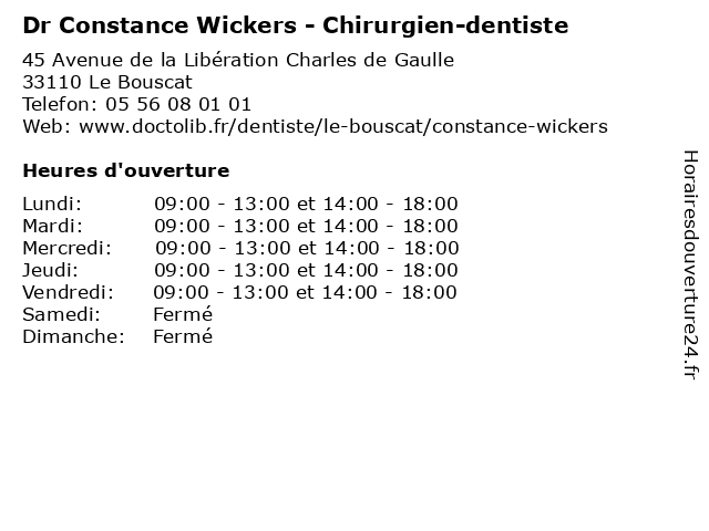 | Lundi | 09:00-13:00 et 14:00-18:00 |