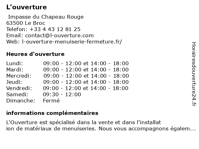 Lundi | 09:00-12:00 et 14:00-18:00 |