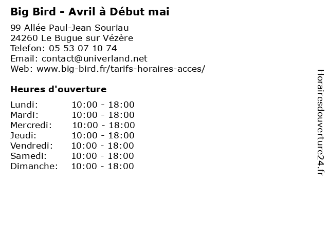 | Dimanche | 10:00-18:00 |