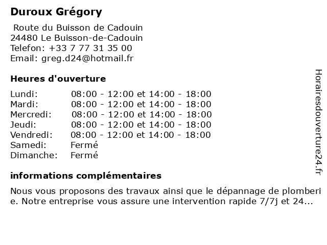 | Mardi | 08:00-12:00 et 14:00-18:00 |