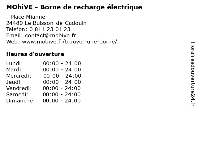 | Dimanche | 00:00-24:00 |