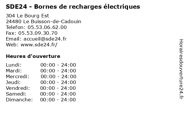 | Samedi | 00:00-24:00 |