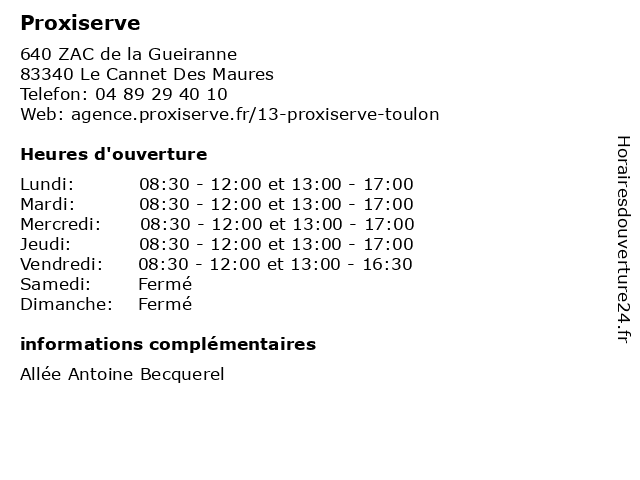 | Lundi | 08:30-12:00 et 13:00-17:00 |