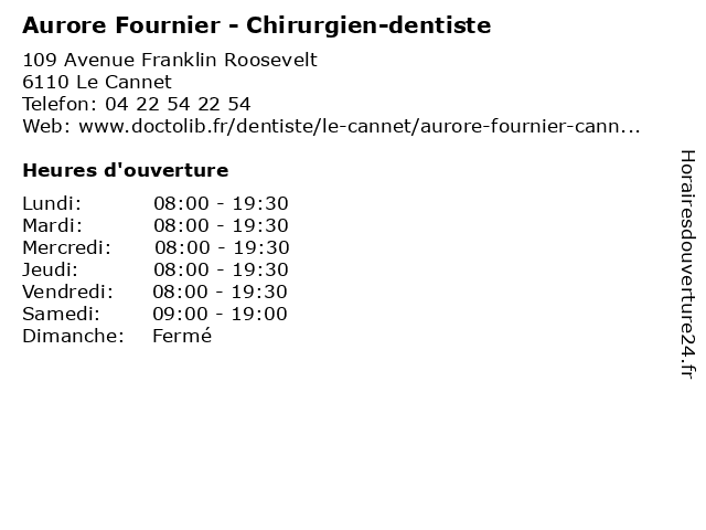 | Lundi | 08:00-19:30 |