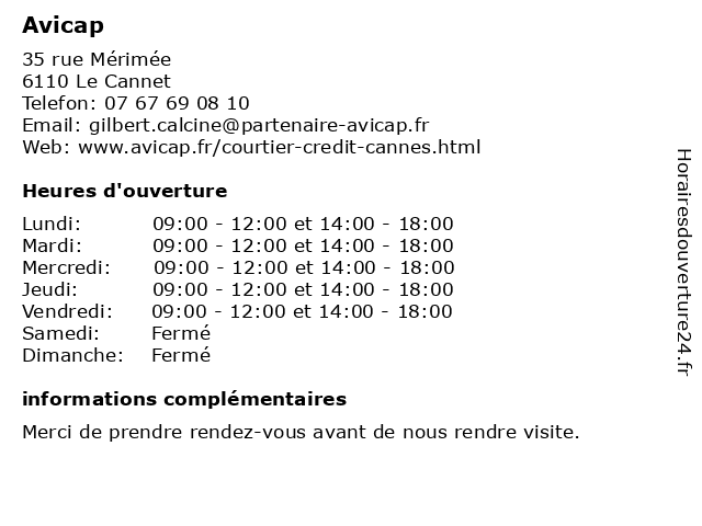Lundi | 09:00-12:00 et 14:00-18:00 |