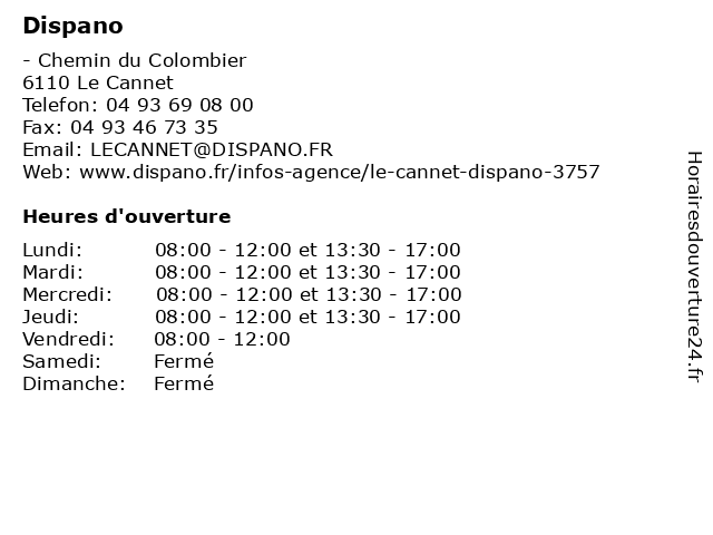 | Lundi | 08:00-12:00 et 13:30-17:00 |