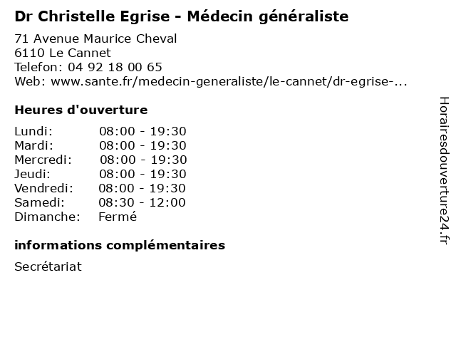 | Mercredi | 08:00-19:30 |
