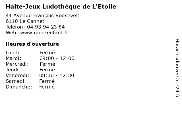 | Lundi | Fermé |