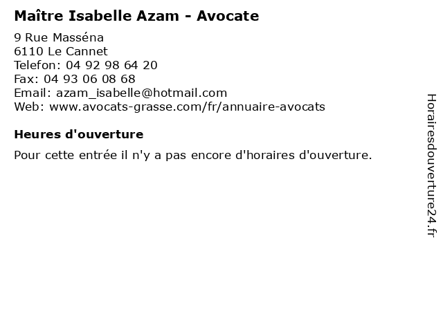 | Appeler Maître Isabelle Azam - Avocate | |