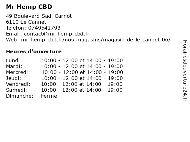 1 Mr Hemp CBD (Distance: 3,80 km) 403 Avenue de Tournamy, 06250 Mougins accessoires, cbd, hemp, huiles, magasin, mr, plantes 2 Mr Hemp CBD (Distance: 7,27 km) 35 Place du Logis, 06580 Pégomas accessoires, cbd, hemp, huiles, magasin, mr, plantes 3 Carrosserie Top Cars - Mr BRIKI - Le Cannet (Distance: 0,86 km) 10 Rue d'Ormesson, 06110 Le Cannet briki, cannet, carrosserie, cars, le, mr, top 4 CBD Shop France (Distance: 1,66 km) 75 Boulevard Carnot, 06400 Cannes cbd, fleurs, france, huile, shop 5 MR Entretien Rénovation (Distance: 2,07 km) 8 Avenue Saint-Jean, 06400 Cannes entretien, mr, rénovation 6 |