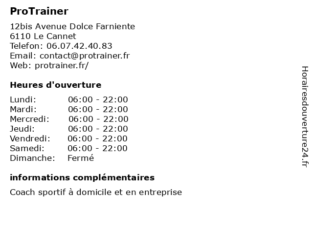 1 EB Coaching & Formation (Distance: 0,19 km) 14 Avenue de Lyon, 06400 Cannes barreteau, cannes, coaching, eb, eléonore, formation, professionnel 2 Laurent Sayegh Coaching (Distance: 0,63 km) 68 Boulevard Carnot, 06400 Cannes coaching, laurent, sayegh 3 JULIEN D'ARSAN (Distance: 1,02 km) 16 Avenue de Vallauris, 06400 Cannes atelier prise de parole, ateliers vocaux, coach de la voix, coach en communication, coach vocal, cours de chant, d'arsan, julien 4 EB Coaching & Formation (Distance: 1,05 km) 3 Rue Czernicky, 06110 Le Cannet barreteau, coaching, eb, eléonore, formation, le cannet, professionnel, siège 5 RIONDET ANNA (Distance: 4,69 km) 2 Allée des Acanthes, 06250 Mougins accompagnement, anna, coach d'orientation, coach de reconversion, coach de vie, coaching, gestion de stress, riondet 6 IFH CONSULTING (Distance: 4,79 km) 33 Rue Fontvieille, 06250 Mougins coach de vie, coaching, coaching individuel, consulting, développement de soi, formation management, ifh |