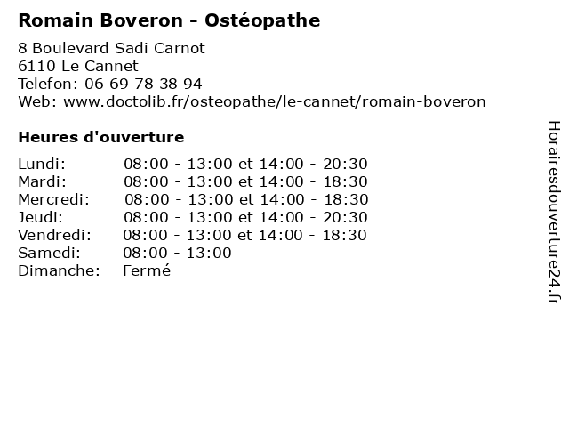 | Vendredi | 08:00-13:00 et 14:00-18:30 |
