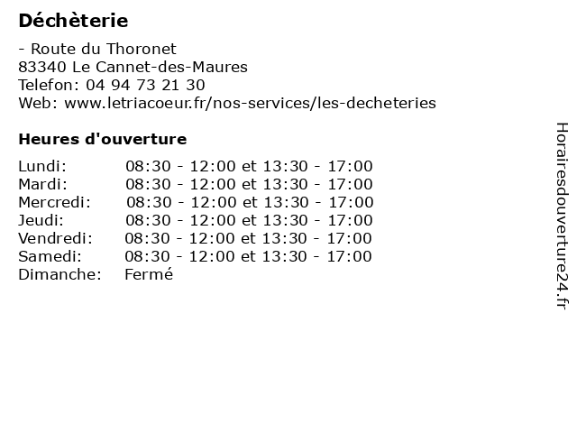 | Lundi | 08:30-12:00 et 13:30-17:00 |