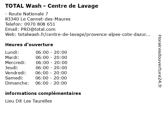 | Lundi | 06:00-20:00 |