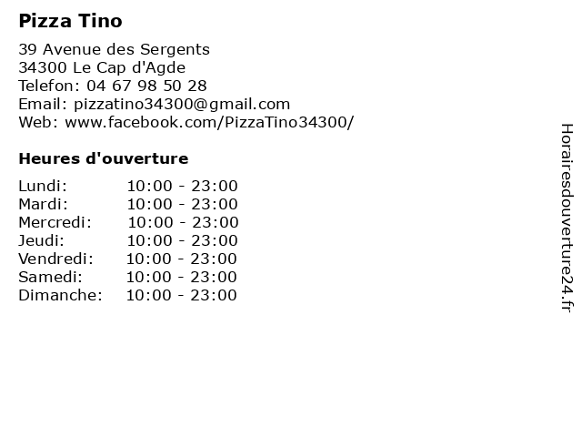 | Dimanche | 10:00-23:00 |