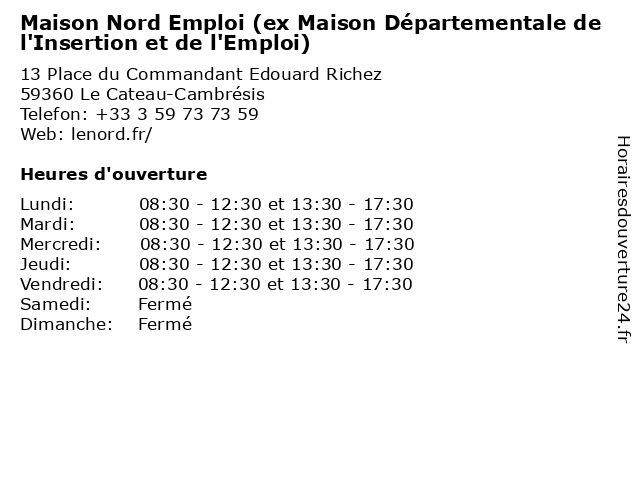 | Lundi | 08:30-12:30 et 13:30-17:30 |