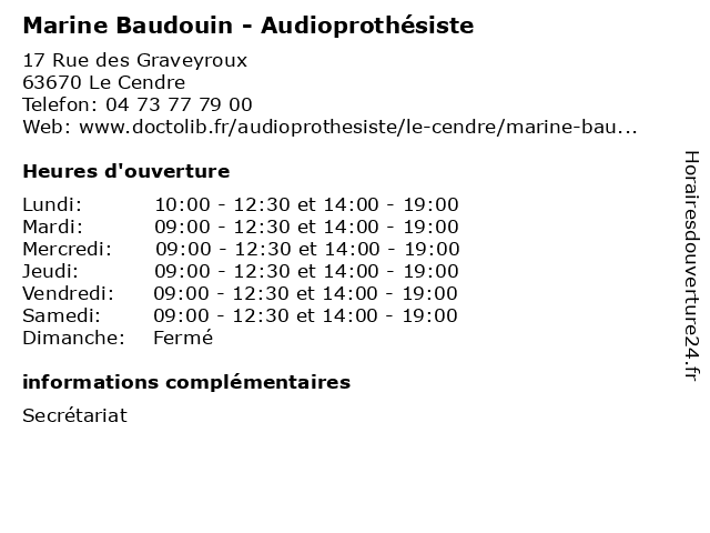 | Mercredi | 09:00-12:30 et 14:00-19:00 |