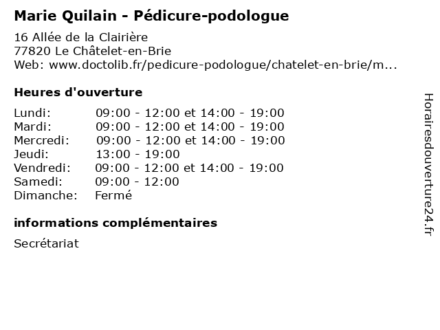 | Mercredi | 09:00-12:00 et 14:00-19:00 |