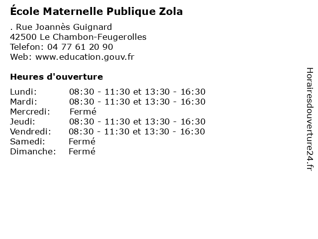 1 École Elémentaire Publique Zola Pasteur (Distance: 0,00 km) . Rue Joannes Guignard, 42500 Le Chambon-Feugerolles cours, education, elémentaire, pasteur, primaire, publique, services, zola, école, élémentaire 2 Parfumerie Zola (Distance: 56,94 km) 14 Rue Emile Zola, 69002 Lyon boutique, parfum, parfumerie, senteur, zola 3 UTILE VILLEURBANNE Zola (Distance: 59,51 km) 5 Cours Emile Zola, 69100 Villeurbanne utile, villeurbanne, zola 4 École Primaire Publique (Distance: 56,79 km) 34 rue Rochambeau, 69008 Lyon ecole, education, maternelle, primaire, publique, services, école 5 École Maternelle Publique (Distance: 56,79 km) 48 rue Joseph Chapelle, 69008 Lyon ecole, education, maternelle, publique, services, école 6 Ecole Elémentaire Publique (Distance: 56,97 km) 14 rue Stéphane Coignet, 69008 Lyon ecole, education, elémentaire, maternelle, publique, services |