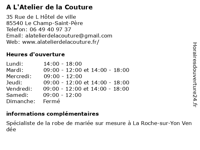 Termes de recherche pour A L'Atelier de la Couture:la, de, boutique, couture, création, l'atelier, mariage, l’atelier, le champ-saint-père |
