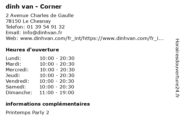 1 dinh van - Corner (Distance: 9,19 km) - Centre Commercial Vélizy 2, 78140 Velizy Villacoublay accessoires, bijouterie, bijoux, boutique, cadeaux, corner, dinh, joaillerie, van 2 dinh van - Corner (Distance: 15,45 km) 24 rue de Sèvres, 75007 Paris accessoires, bijouterie, bijoux, boutique, cadeaux, corner, dinh, joaillerie, van 3 dinh van - Corner (Distance: 16,31 km) 64 boulevard Haussmann, 75009 Paris accessoires, bijouterie, bijoux, boutique, cadeaux, corner, dinh, joaillerie, van 4 dinh van - Corner (Distance: 16,58 km) 40 boulevard Haussmann, 75009 Paris accessoires, bijouterie, bijoux, boutique, cadeaux, corner, dinh, joaillerie, van 5 dinh van - Corner (Distance: 16,89 km) 9 rue de la Monnaie, 75001 Paris accessoires, bijouterie, bijoux, boutique, cadeaux, corner, dinh, joaillerie, van 6 Save Corner Parly 2 (Distance: 0,02 km) 2 Avenue Charles de Gaulle, 78150 Le Chesnay-Rocquencourt corner, parly, save |