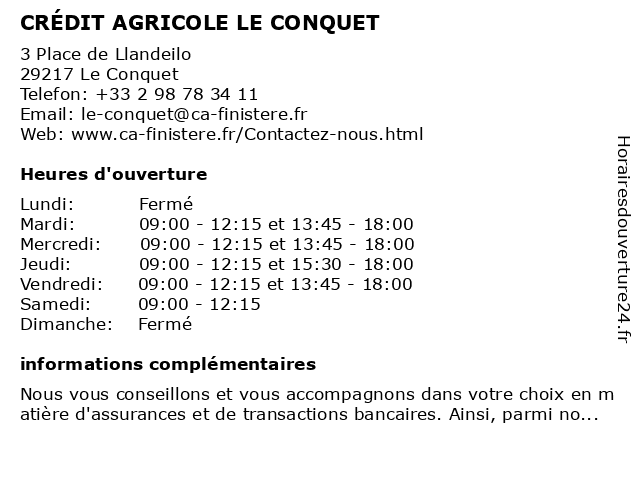 Termes de recherche pour CRÉDIT AGRICOLE LE CONQUET:le, agricole, crédit, conquet |