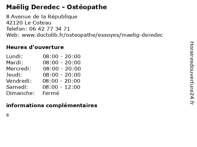 1 Tchip Coiffure (Distance: 0,16 km) 51 avenue de la Libération, 42120 Le Coteau beauté, coiffure, coupe, salon, soins, tchip 2 Lea Cottier - Ostéopathe (Distance: 0,20 km) 7 Rue de Vernay, 42120 Le Coteau cottier, lea, osteo, osteopathe, ostéopathe, sante, soins 3 Guillaume Roux - Ostéopathe (Distance: 0,91 km) 6 Bis Avenue de Lyon, 42300 Roanne docteur, guillaume, médecin, ostéopathe, ostéopathie, roux, santé 4 Franck Galichon - Ostéopathe (Distance: 0,91 km) 6 Bis Avenue de Lyon, 42300 Roanne docteur, franck, galichon, médecin, ostéopathe, ostéopathie, santé 5 Marion Zahn-Delubac - Ostéopathe (Distance: 0,91 km) 6 Bis Avenue de Lyon, 42300 Roanne delubac, docteur, marion, médecin, ostéopathe, ostéopathie, santé, zahn 6 PERRON HECTOR (Distance: 1,28 km) 2 Rue Fontquentin, 42300 Roanne atm ostéopathe, consultation, doctolibe, drainage lymphatique, hector, hostéo, hostéopath, lumbago, ostéo, ostéo bébé, ostéopathe, ostéopathe grossesse, ostéopathe handicapée, ostéopathe machoir, ostéopathe mal de tete, ostéopathie, perron, pudendale, urgence |