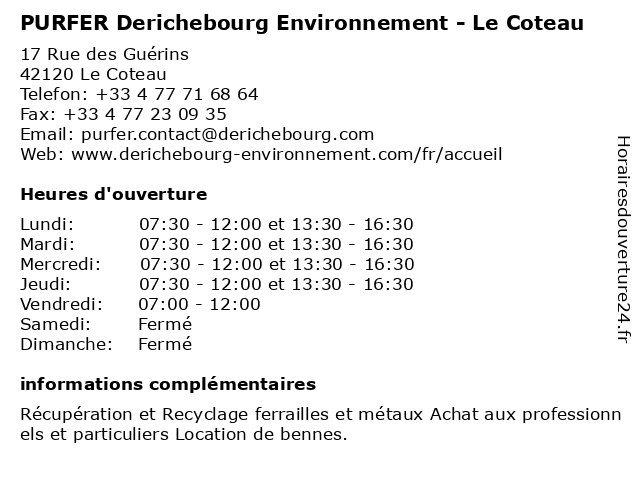 Termes de recherche pour PURFER Derichebourg Environnement - Le Coteau:le, environnement, coteau, derichebourg, purfer |