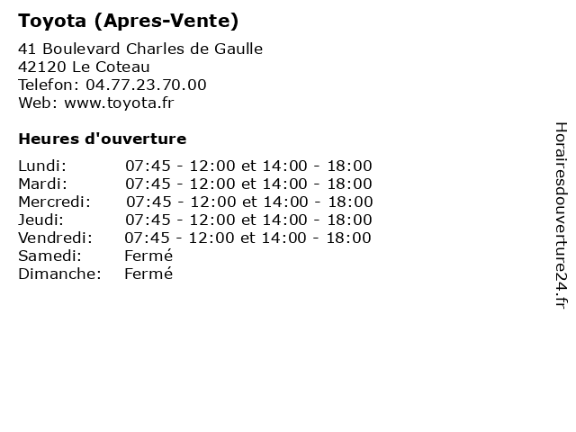 | Lundi | 07:45-12:00 et 14:00-18:00 |