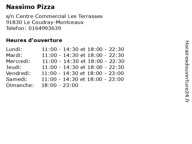 | Mardi | 11:00-14:30 et 18:00-22:30 |