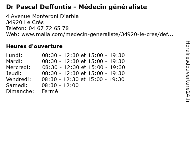 | Lundi | 08:30-12:30 et 15:00-19:30 |