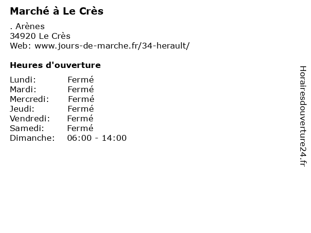 | Lundi | Fermé |