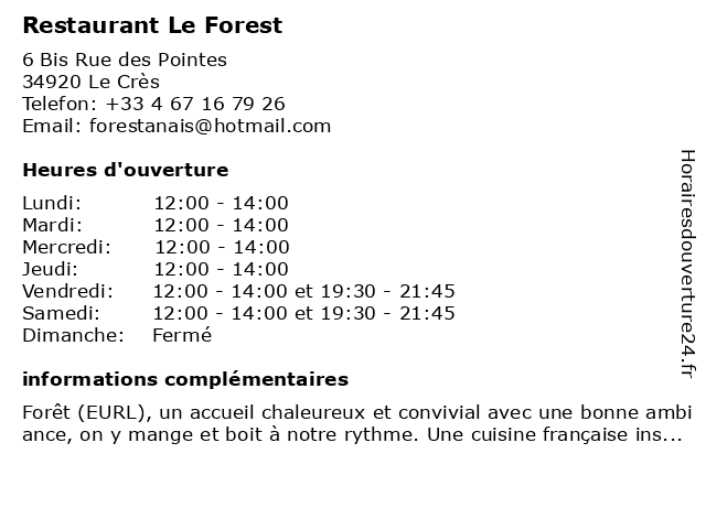 Termes de recherche pour Restaurant Le Forest:restaurant, le, forest |