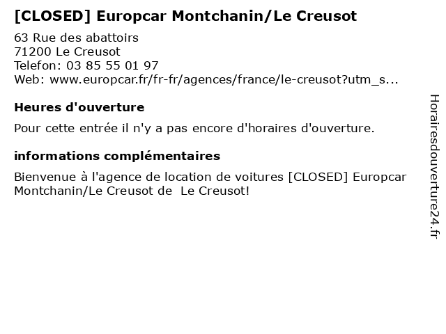 | Appeler [CLOSED] Europcar Montchanin/Le Creusot | |