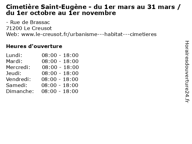 Termes de recherche pour Cimetière Saint-Eugène - du 1er mars au 31 mars / du 1er octobre au 1er novembre:du, saint, chapelle, au, mars, pasteur, 1er, 31, religion, eugène, octobre, novembre, eglise, paroisse, chrétien, cimetiere, christianisme |