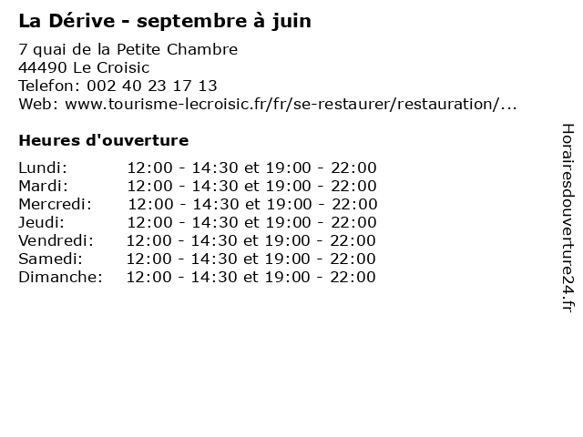 Termes de recherche pour La Dérive - septembre à juin:la, restaurants, crepes, viandes, galettes, septembre, juin, poissons, fruits de mer, derive |
