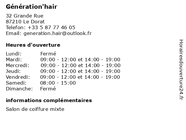 | Mercredi | 09:00-12:00 et 14:00-19:00 |