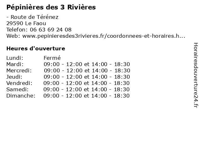 | Dimanche | 09:00-12:00 et 14:00-18:30 |