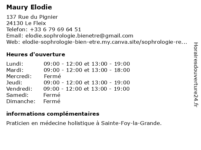 | Lundi | 09:00-12:00 et 13:00-19:00 |