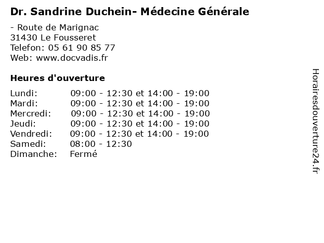 | Lundi | 09:00-12:30 et 14:00-19:00 |