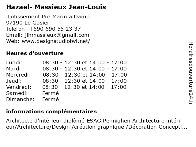 | Lundi | 08:30-12:30 et 14:00-17:00 |