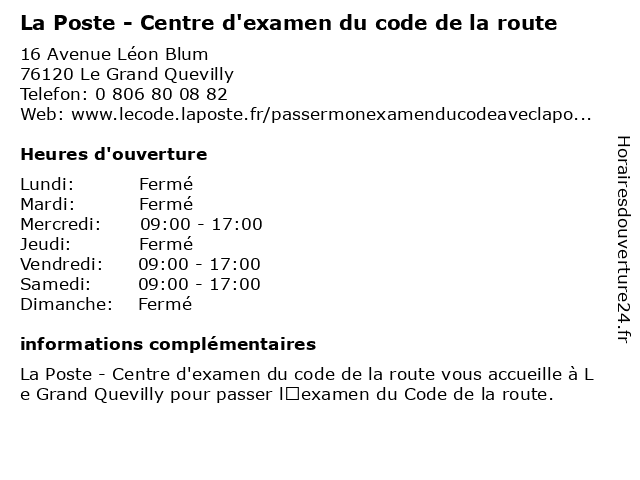 Termes de recherche pour La Poste - Centre d'examen du code de la route:poste, la, du, de, route, centre, code, d'examen, centre d'évaluation scolaire, école technique |