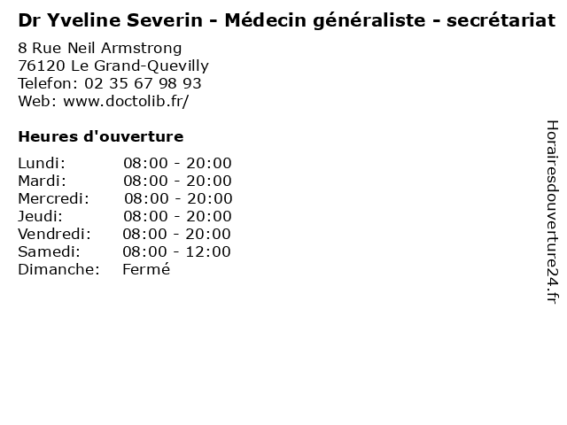 1 Dr Yveline Sevrin - Médecin généraliste (Distance: 0,00 km) 8 Rue Neil Armstrong, 76120 Le Grand-Quevilly docteur, dr, generaliste, généraliste, medical, médecin, sevrin, soin, yveline 3 Dr Florence Lefrancois - Dermatologue - secrétariat (Distance: 0,00 km) 8 Rue Neil Armstrong, 76120 Le Grand-Quevilly consultation, dermatologue, docteur, dr, florence, lefrancois, med, médecin, médecine, secrétariat, traitement 4 Dr Arthur Christen - Médecin généraliste - secrétariat (Distance: 0,00 km) 8 Rue Neil Armstrong, 76120 Le Grand-Quevilly arthur, christen, consultation, docteur, dr, généraliste, med, médecin, médecine, secrétariat, traitement 5 Dr Olivier Faber - Médecin généraliste - secrétariat (Distance: 0,00 km) 8 Rue Neil Armstrong, 76120 Le Grand-Quevilly consultation, docteur, dr, faber, généraliste, med, médecin, médecine, olivier, secrétariat, traitement 6 Dr Jean Yves Maunuory - Médecin généraliste - secrétariat (Distance: 0,00 km) 8 Rue Neil Armstrong, 76120 Le Grand-Quevilly consultation, docteur, dr, généraliste, jean, maunuory, med, médecin, médecine, secrétariat, traitement, yves |
